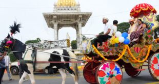 ಮೈಸೂರು: ಸಾಂಪ್ರದಾಯಿಕ ಉಡುಗೆ ತೊಟ್ಟು ನವ ವಧುವರರಂತೆ ಕಂಗೊಳಿಸುತ್ತಿದ್ದ ಜೋಡಿಗಳು ಬೆಳ್ಳಂಬೆಳಿಗ್ಗೆ ಟಾಂಗಾ ಸವಾರಿ ಮಾಡಿ, ಇತಿಹಾಸ ಸಾರುವ ಪಾರಂಪರಿಕ ಕಟ್ಟಡಗಳನ್ನು ವೀಕ್ಷಿಸಿದರು. ವಿಶ್ವವಿಖ್ಯಾತ ದಸರಾ ಮಹೋತ್ಸವದ ಅಂಗವಾಗಿ ಪುರಾತತ್ವ, ಸಂಗ್ರಹಾಲಯಗಳು ಮತ್ತು ಪರಂಪರೆ ಇಲಾಖೆ ಹಾಗೂ ಪ್ರವಾಸೋದ್ಯಮ ಇಲಾಖೆ ಸಂಯುಕ್ತಾಶ್ರಯದಲ್ಲಿ ನಗರದ ರಂಗಚಾರ್ಲು ಪುರಭವನದಲ್ಲಿ ಪಾರಂಪರಿಕ ಕಟ್ಟಡ ಮತ್ತು ಇತಿಹಾಸದ ಮಾಹಿತಿ, ಪಾರಂಪರಿಕ ಉಡುಗೆಗಳನ್ನು ಪ್ರಚಲಿತಗೊಳಿಸುವುದು ಹಾಗೂ ನಶಿಸಿ ಹೋಗುತ್ತಿರುವ ಪಾರಂಪರಿಕ ಟಾಂಗಾಗಳ ಉಳಿಸುವಿಕೆ ಉದ್ದೇಶದಿಂದಾಗಿ ಟಾಂಗಾ ಸವಾರಿ ಆಯೋಜಿಸಲಾಗಿತ್ತು. …