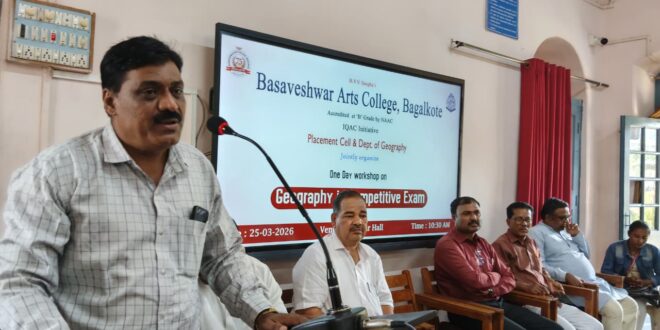 ನಗರದ ಬಿವಿವಿ ಸಂಘದ ಬಸವೇಶ್ವರ ಕಲಾ ಮಹಾವಿದ್ಯಾಲಯದ ಪ್ಲೇಸ್ಮೆಂಟ್ ಸೆಲ್ ಹಾಗೂ ಭೂಗೋಳಶಾಸ್ತ್ರ ವಿಭಾಗದ ಸಹಯೋಗದಲ್ಲಿ ಹಮ್ಮಿಕೊಂಡಿದ್ದ ಒಂದು ದಿನದ ಸ್ಪರ್ಧಾತ್ಮಕ ಪರೀಕ್ಷೆಯಲ್ಲಿ ಭೂಗೋಳಶಾಸ್ತ್ರದ ಮಹತ್ವದ ಕುರಿತು ಕಾರ್ಯಾಗಾರವನ್ನು ಉದ್ದೇಶಿಸಿ ಮಾತನಾಡಿದ ಅವರು ಭೂಗೋಳದ ಜೊತೆಗೆ ವಿಜ್ಞಾನ, ಇತಿಹಾಸ, ಮಾನಸಿಕ ಸಾಮರ್ಥ್ಯ ವಿಷಯದ ಬಗ್ಗೆ ಅರಿವಿರಬೇಕು. ಸರಕಾರಿ ಉದ್ಯೋಗಕ್ಕೆ ಸಿಇಟಿ ರ್ಯಾಂಕ್ ಅವಶ್ಯಕ. ಪ್ರಚಲಿತ ಘಟನೆಗಳನ್ನು ತಿಳಿದುಕೊಳ್ಳಬೇಕು. ಸ್ಪರ್ಧಾತ್ಮಕ ಪರೀಕ್ಷೆಯಲ್ಲಿ ಭೂಗೋಳಶಾಸ್ತ್ರದ 25 ಪ್ರಶ್ನೆಗಳು ಕಡ್ಡಾಯವಾಗಿರುತ್ತವೆ. ವಿದ್ಯಾರ್ಥಿಗಳು ಪ್ರಶ್ನೆ ಪತ್ರಿಕೆಗಳನ್ನು ಸಂಗ್ರಹಿಸುವ ಸಾಮರ್ಥ್ಯ ಹೊಂದಿರಬೇಕು. ಕೋಚಿಂಗ್ಗೆ ಕಲಿಯಲು ಹೋಗುತ್ತಾರೆ. ಆದರೆ ಕೋಚಿಂಗ್ ಹೋಗದೇ ಸರಕಾರಿ ಉದ್ಯೋಗ ಪಡೆದವರನ್ನು ಕಾಣಬಹುದು. ಸ್ಮಾರ್ಟ್ ವರ್ಕ್ ಮಾಡುವವರು ಯಾವಾಗಲೂ ಯಶಸ್ಸಿನ ದಾರಿಯಲ್ಲಿರುತ್ತಾರೆ ಎಂದು ಶ್ಲಾಘೀಸಿದರು.