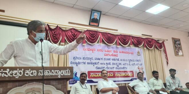 ನಗರದ ಬಸವೇಶ್ವರ ಪದವಿಪೂರ್ವ ಕಲಾ ಮಹಾವಿದ್ಯಾಲಯದಲ್ಲಿ ಹಮ್ಮಿಕೊಂಡ ಪ್ರತಿಭಾ ಪುರಸ್ಕಾರ , ವಾರ್ಷಿಕ ಸಂಚಿಕೆ ಬಿಡುಗಡೆ, ಪಿಯುಸಿ ದ್ವಿತೀಯ ವರ್ಷದ ವಿದ್ಯಾರ್ಥಿಗಳ ಬೀಳ್ಕೊಡುಗೆ ಸಮಾರಂಭ ಹಾಗೂ ಕ್ರೀಡಾ ಸಾಂಸ್ಕೃತಿಕ, ಎನ್.ಸಿ.ಸಿ, ಎನ್.ಎಸ್.ಎಸ್ ರೋವರ್ ರೇಂಜರ್ ಚಟುವಟಿಕೆಗಳ ಸಮಾರೋಪ ಸಮಾರಂಭದಲ್ಲಿ ಕಲಾ ವಿಹಾರ ವಾರ್ಷಿಕ ವಿಶೇಷ ಸಂಚಿಕೆಯನ್ನು ಅನಾವರಣಗೊಳಿಸಿ ಮಾತನಾಡಿದರು. ನಾವು ಅಧ್ಯಯನ ಮಾಡುವ ವಿಷಯದ ಬಗ್ಗೆ ಹೆಮ್ಮೆ ಇರಬೇಕು. ಉನ್ನತ ಸರಕಾರಿ ಉದ್ಯೋಗಗಳನ್ನು ಆಯ್ದುಕೊಳ್ಳಲು ಕಲಾ ವಿಭಾಗದ ವಿಷಯಗಳ ಅಧ್ಯನ ಅವಶ್ಯವಾಗಿರುತ್ತದೆ ಎಂಬುದನ್ನು ಗಮನದಲ್ಲಿರಿಸಿಕೊಂಡು ಅಧ್ಯಯನದಲ್ಲಿ ತೊಡಗಿಕೊಳ್ಳಿ. ಸಂಕುಚಿತ ಮನೋಭಾವದಲ್ಲಿ ಅಧ್ಯಯನ ಮಾಡುವುದನ್ನು ಬಿಟ್ಟು ವಿಸ್ತೃತ ವಿಷಯದ ಜ್ಞಾನ ಪಡೆಯಬೇಕು. ಪಠ್ಯಕ್ಕೆ ಮಾತ್ರ ಸೀಮಿತವಾಗದೇ ವಿಸ್ತೃತ ಮತ್ತು ಆಳವಾದ ಅದ್ಯಯನ ಕ್ರಮ ರೂಪಿಸಿಕೊಂಡರೆ ಪರಿಪೂರ್ಣತೆ ಪಡೆದುಕೊಳ್ಳಲು ಸಾಧ್ಯ ಎಂದರು.