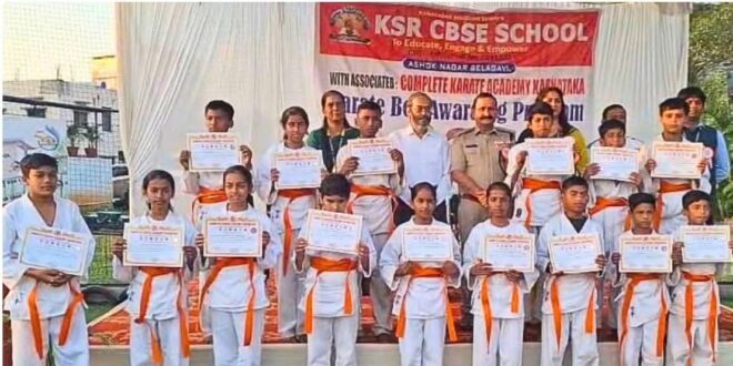 ಬೆಳಗಾವಿ ಜಿಲ್ಲಾ ಸ್ಪೋರ್ಟ್ಸ್ ಕರಾಟೆ ಅಕಾಡೆಮಿ ಮತ್ತು ಬೆಳಗಾವಿ ಜಿಲ್ಲಾ ಸ್ಪೋರ್ಟ್ಸ್ ಅಸೋಸಿಯೇಷನ ವತಿಯಿಂದ ಕೆ.ಎಸ್.ಆರ್. ಸಿ ಬಿ ಎಸ್ ಸಿ ಶಾಲೆಯಲ್ಲಿ ಮಕ್ಕಳಿಗೆ ಕರಾಟೆ ತರಬೇತಿಯನ್ನು ನೀಡಲಾಗುತ್ತಿದ್ದು, ತರಬೇತಿ ಪೂರೈಸಿದ ವಿದ್ಯಾರ್ಥಿಗಳಿಗೆ ಕರಾಟೆ ಬೆಲ್ಟ್ ವಿತರಿಸಲಾಯಿತು.