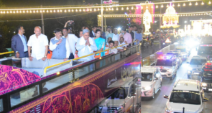 ಮೈಸೂರು: ವಿಶ್ವವಿಖ್ಯಾತ ನಾಡಹಬ್ಬ ಮೈಸೂರು ದಸರಾ ಮಹೋತ್ಸವದ ಅಂಗವಾಗಿ ನಗರದಲ್ಲಿ ಚಾಮುಂಡೇಶ್ವರಿ ವಿದ್ಯುತ್ ಸರಬರಾಜು ನಿಗಮ ನಿಯಮಿತ (ಸೆಸ್ಕ್)ದ ವತಿಯಿಂದ ಮಾಡಲಾಗಿರುವ ವಿದ್ಯುತ್ ದೀಪಾಲಂಕಾರವನ್ನು ಮುಖ್ಯಮಂತ್ರಿ ಸಿದ್ದರಾಮಯ್ಯ ಅವರು ಶುಕ್ರವಾರ ರಾತ್ರಿ ವೀಕ್ಷಿಸಿ ಸಂತಸ ವ್ಯಕ್ತಪಡಿಸಿದರು. ಅಂಬಾರಿ ಬಸ್ಸಿನಲ್ಲಿ ನಗರ ಪ್ರದಕ್ಷಿಣೆ ಹಾಕಿದ ಸಿಎಂ ಸಿದ್ದರಾಮಯ್ಯ ನಗರದ ಪ್ರಮುಖ ಭಾಗಗಳಲ್ಲಿ ಸಂಚರಿಸುವ ಮೂಲಕ ದಸರಾ ವಿದ್ಯುತ್ ದೀಪಾಲಂಕಾರ ವೀಕ್ಷಿಸಿ, ದೀಪಾಲಂಕಾರದ ಅದ್ಭುತ ಆಕರ್ಷಣೆಗೆ ಮನಸೋತರು.ನಗರದ ರಾಮಸ್ವಾಮಿ ವೃತ್ತದಿಂದ ಆರಂಭವಾದ ಮುಖ್ಯಮಂತ್ರಿಗಳ ದೀಪಾಲಂಕಾರ …