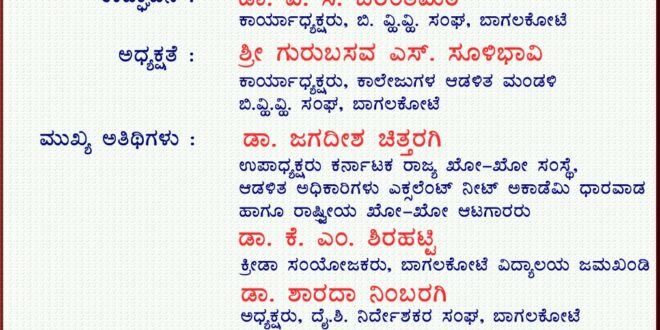 ಕಾರ್ಯಕ್ರಮದ ಉದ್ಘಾಟನೆಯನ್ನು ಬಿವಿವಿ ಸಂಘದ ಕಾರ್ಯಧ್ಯಕ್ಷರಾದ ವೀರಣ್ಣ ಸಿ. ಚರಂತಿಮಠ ಮಾಡಲಿದ್ದಾರೆ. ಧಾರಾವಾಡದ ಎಕ್ಸಲೆಂಟ್ ನೀಟ್ ಅಕಾಡೆಮಿ ಅಧಿಕಾರಿ ಹಾಗೂ ಕರ್ನಾಟಕ ರಾಜ್ಯದ ಖೋ ಖೋ ಸಂಸ್ಥೆಯ ಉಪಾಧ್ಯಕ್ಷರಾದ ಡಾ. ಜಗದೀಶ ಚಿತ್ತರಗಿ, ಜಮಖಂಡಿ ವಿವಿಯ ಕ್ರೀಡಾ ಸಂಯೋಜಕರಾದ ಕೆ. ಎಮ್. ಶಿರಹಟ್ಟಿ ಮತ್ತು ವಿವಿಯ ದೈಯಿಕ ಶಿಕ್ಷಣದ ನಿರ್ದೇಶಕರ ಸಂಘದ ಅಧ್ಯಕ್ಷರಾದ ಡಾ. ಶಾರದಾ ನಿಂಬರಗಿ ಮುಖ್ಯ ಅತಿಥಿಯ ಸ್ಥಾನವನ್ನು ವಹಿಸಲಿದ್ದಾರೆ. ಅಧ್ಯಕ್ಷತೆಯನ್ನು ಕಾಲೇಜು ಆಡಳಿತ ಮಂಡಳಿಯ ಕಾರ್ಯಾಧ್ಯಕ್ಷರಾದ ಗುರುಬಸವ ಎಸ್. ಸೂಳಿಭಾವಿ ವಹಿಸಲಿದ್ದಾರೆ. ಸಾಯಂಕಾಲ ನಡೆಯುವ ಬಹುಮಾನ ವಿತರಣಾ ಹಾಗೂ ಸಮಾರೋಪ ಸಮಾರಂಭದಲ್ಲಿ ಮುಖ್ಯ ಅತಿಥಿಗಳಾಗಿ ವಿದ್ಯಾಗಿರಿಯ ಬಸವೇಶ್ವರ ದೈಹಿಕ ಶಿಕ್ಷಣ ಮಹಾವಿದ್ಯಾಲಯದ ಡಾ. ಸಂಗಮೇಶ ಬಿರಾದರ,ಗುಳೆದಗುಡ್ಡದ ಎಸ್.ಎಮ್.ಬಿ.ಕಲಾ ಆರ್.ಆರ್.ಬಿ.ವಾಣಿಜ್ಯ ಹಾಗೂ ಎಸ್.ಕೆ.ಆರ್‌.ವಿಜ್ಞಾನ ಮಹಾವಿದ್ಯಾಲಯದ ಡಾ. ಚಿದಾನಂದ ನಂದಾರ್,ಬಸವೇಶ್ವರ ವಾಣಿಜ್ಯ ಮಹಾವಿದ್ಯಾಲಯದ ಡಾ. ಸದಾಶಿವ ಎಸ್. ಕೋಟ್ಯಾಳ ಇರಲಿದ್ದು. ಬಸವೇಶ್ವರ ಕಲಾ ಮಹಾವಿದ್ಯಾಲಯದ ಪ್ರಾಚಾರ್ಯರಾದ ಎಸ್. ಆರ್. ಮುಗನೂರಾಮಠ ಅಧ್ಯಕ್ಷೀಯ ಸ್ಥಾನವನ್ನು ವಹಿಸಲಿದ್ದಾರೆ. ಎಂದು ಐಕ್ಯೂಎಸಿ ಸಂಯೋಜಕರಾದ ಎ. ಯು. ರಾಠೋಡ ,ದೈಹಿಕ ಶಿಕ್ಷಣದ ನಿರ್ದೇಶಕರಾದ ಎಮ್. ಎಮ್. ದೇವನಾಳ ಪ್ರಕಟಣೆಯಲ್ಲಿ ತಿಳಿಸಿದ್ದಾರೆ.
