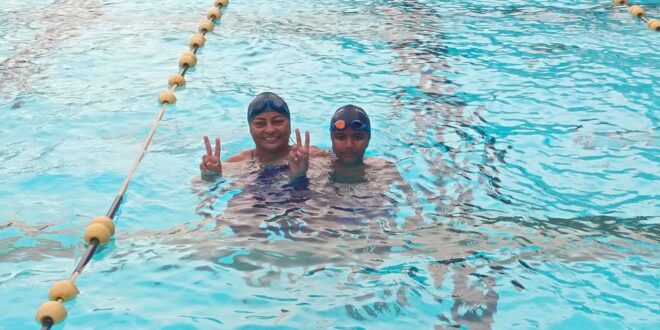 ಈಜು ರಿಲೆ: ದಾಖಲೆ ಬರೆದ ತಾಯಿ-ಮಗ