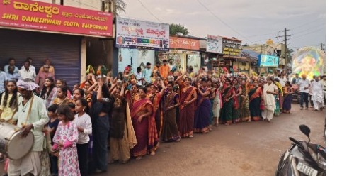 ಗಮನ ಸೆಳೆದ 50ನೇ ವರ್ಷದ ಗಣೇಶೋತ್ಸವ ಸಂಭ್ರಮ: ಪಟ್ಟಣದ ಪೇಟೆ ಓಣಿಯ ಗಣೇಶೋತ್ಸವಕ್ಕೆ 50ವರ್ಷ ತುಂಬಿದ ಹಿನ್ನೆಲೆಯಲ್ಲಿ ಗಣೇಶ ಮೂರ್ತಿ ಪ್ರತಿಷ್ಠಾಪನಾ ಮೆರವಣಿಗೆ ಗಮನ ಸೆಳೆಯಿತು. ಎತ್ತರದ ಗಣೇಶ ಮೂರ್ತಿಯ ಮುಂದೆ ಕುಂಭ ಮತ್ತು ಆರತಿ ಹಿಡಿದು ಮಹಿಳೆಯರು ಸಾಲುಗಟ್ಟಿ ಸಾಗಿದರು. ಪಾರಂಪರಿಕ ಕಲೆಗಳ ಪ್ರದರ್ಶನದ ಜೊತೆಗೆ ಜಾಝ್ ಪಥಕ ಮತ್ತು ಭಕ್ತಿಗೀತೆಗಳು ಮೊಳಗಿದವು. ಮೆರವಣಿಗೆ ಮಾರ್ಗದುದ್ದಕ್ಕೂ ಯುವಪಡೆ ಕುಣಿದು ಕುಪ್ಪಳಿಸಿತು.