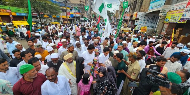 ಮಳೆ ಮಧ್ಯೆಯೂ ನಗರದಲ್ಲಿ ಭಾನುವಾರ ಈದ್‌-ಮಿಲಾದ್‌ ಹಬ್ಬದ ಮೆರವಣಿಗೆ