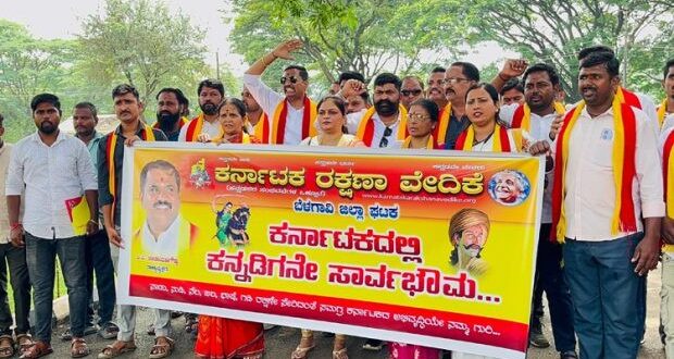 ಬೆಳಗಾವಿ: ಕರ್ನಾಟಕ ರಾಜ್ಯೋತ್ಸವ ಸಂದರ್ಭದಲ್ಲಿ ಎಂಇಎಸ್ ನಡೆಸುವ ಕರಾಳ ದಿನಾಚರಣೆಗೆ ಅನುಮತಿ ನೀಡಬಾರದು ಎಂದು ಬೆಳಗಾವಿಯಲ್ಲಿ ಕರ್ನಾಟಕ ರಕ್ಷಣಾ ವೇದಿಕೆಯಿಂದ ನಗರ ಪೊಲೀಸ್ ಆಯುಕ್ತರ ಕಚೇರಿ ಎದುರು ಪ್ರತಿಭಟನೆ ನಡೆಸಿದರು.