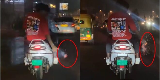 ಆದಿತ್ಯ ಸ್ಕೂಟರ್ ಓಡಿಸುತ್ತಿದ್ದು, ಈ ವೇಳೆ ಹಿಂಬದಿಯಲ್ಲಿ ಕುಳಿತಿದ್ದ ಅಕ್ಷಯ್ ಪಟಾಕಿಗಳನ್ನು ಸಿಡಿಸಿ ರಸ್ತೆಗೆ ಎಸೆದು ಪುಂಡಾಟ ಪ್ರದರ್ಶಿಸಿದ್ದ.