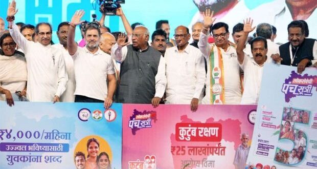 ಉದ್ಧವ್‌ ಶಿವಸೇನೆ, ಶರದ್‌ ಎನ್‌ಸಿಪಿ ಹಾಗೂ ಕಾಂಗ್ರೆಸ್‌ ಪಕ್ಷಗಳ ಮೈತ್ರಿಕೂಟವಾದ ಎಂವಿಎ ಪ್ರಣಾಳಿಕೆ ಬಿಡುಗಡೆಗೊಳಿಸಿ, ಭರ್ಜರಿ ಘೋಷಣೆಗಳನ್ನು ಮಾಡಿದೆ.