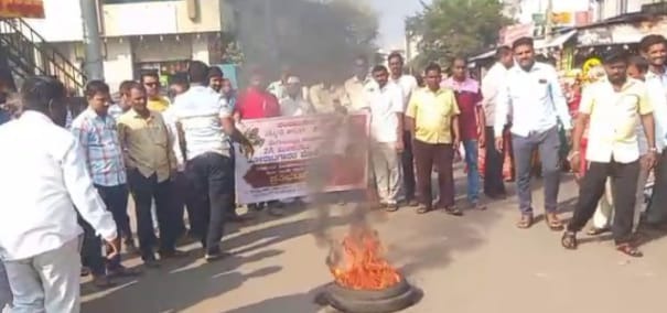 ಅಥಣಿಯಲ್ಲಿ ರಾಷ್ಟ್ರೀಯ ಹೆದ್ದಾರಿ ತಡೆದು, ಟೈರ್ ಗೆ ಬೆಂಕಿ ಹಚ್ಚಿ ಪ್ರತಿಭಟನಾಕಾರರು ಆಕ್ರೋಶ ವ್ಯಕ್ತಪಡಿಸಿದ್ದಾರೆ. ಸರ್ಕಾರದ ವಿರುದ್ಧವೂ ಘೋಷಣೆಗಳನ್ನು ಕೂಗಿದ್ದಾರೆ.