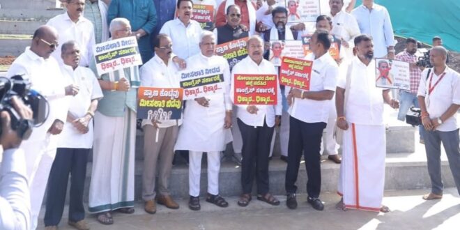 ಪ್ರತಿಭಟನೆಯಲ್ಲಿ ರಾಜ್ಯಾಧ್ಯಕ್ಷರಾದ ಶ್ರೀ ವಿಜಯೇಂದ್ರ ಯಡಿಯೂರಪ್ಪ, ಪ್ರತಿಪಕ್ಷ ನಾಯಕರಾದ ಶ್ರೀ ಆರ್. ಅಶೋಕ್, ವಿಧಾನ ಪರಿಷತ್ ವಿಪಕ್ಷ ನಾಯಕರಾದ ಶ್ರೀ ಛಲವಾದಿ ನಾರಾಯಣಸ್ವಾಮಿ, ಶಾಸಕರು, ಪರಿಷತ್ ಸದಸ್ಯರು ಉಪಸ್ಥಿತರಿದ್ದರು.