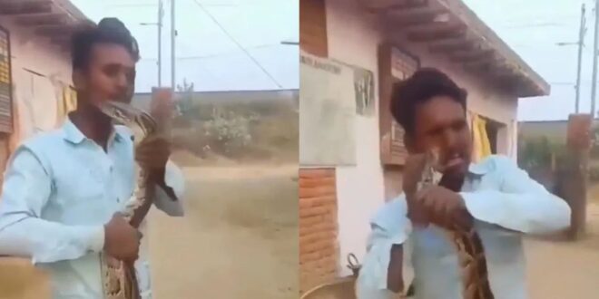 ವಿಡಿಯೋ ಮಾಡುವ ಸಲುವಾಗಿ ಆ ಹಾವಿಗೆ ಮುತ್ತಿಡಲು ಹೋಗಿ ಕಚ್ಚಿಸಿಕೊಂಡಿದ್ದಾನೆ. ಈ ವಿಡಿಯೋ ಇದೀಗ ಸಖತ್ ವೈರಲ್ ಆಗುತ್ತಿದೆ.