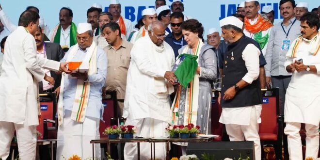 ಜೈ ಬಾಪು, ಜೈ ಭೀಮ್, ಜೈ ಸಂವಿಧಾನ ಸಮಾವೇಶದಲ್ಲಿ ಪಾಲ್ಗೊಂಡು ಮಾತನಾಡಿದ ಅವರು, ತಂದೆ ಕಳೆದುಕೊಂಡಾಗ ಪ್ರಿಯಾಂಕಾ ಅವರಿಗೆ ನಾಲ್ಕೈದು ವರ್ಷ. ತಾಯಿ ರಕ್ಷಣೆಯಲ್ಲಿ ಬೆಳೆದು ಬಂದ ಅವರು ಇಂದು ಈ ಹಂತಕ್ಕೆ ಬಂದು ನಿಂತಿದ್ದಾರೆ. ಪ್ರಿಯಾಂಕಾ ಎಂದೂ ಕೂಡ ತನ್ನ ಕೊರತೆ, ಕಮಜೋರಿ ದೇಶಕ್ಕೆ ತೋರಿಸಿದವರಲ್ಲ. ಗಾಂಧಿ ಕುಟುಂಬ ಅಂಥದ್ದು. ಇಂಥ ಕುಟುಂಬಕ್ಕೆ ಮೋದಿ, ಅಮಿತ್ ಶಾ ಮತ್ತು ಅವರ ಚಮಚಾಗಳೂ ಬೈಯ್ಯುತ್ತಾರೆ. ದೇಶದ ಜನ ಹೆದರಬೇಕಿಲ್ಲ. ಬಿಜೆಪಿ ವಿರುದ್ಧ ಹೋರಾಡಲು ನಾವು ಸಿದ್ಧರಾಗಿದ್ದೇವೆ ಎಂದು ಖರ್ಗೆ ಎಚ್ಚರಿಸಿದರು.