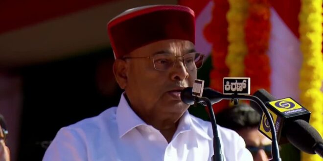 ಎಲ್ಲರಿಗೂ ನಮಸ್ಕಾರ ಎನ್ನುತ್ತಾ ಕನ್ನಡದಲ್ಲೇ ಭಾಷಣ ಆರಂಭಿಸಿದ ಅವರು, ಕರ್ನಾಟಕ ಸಂವಿಧಾನದ ಮಹತ್ತರ ಆಶಯವಾದ ಸಾಮಾಜಿಕ ಮತ್ತು ಆರ್ಥಿಕ ನ್ಯಾಯವನ್ನು ನೆಲೆಗೊಳಿಸಲು ಶಕ್ತಿಮೀರಿ ಶ್ರಮಿಸುತ್ತಿದೆ. ದೇಶದಲ್ಲಿ ಹೆಚ್ಚುತ್ತಿರುವ ಆರ್ಥಿಕ ಅಸಮಾನತೆಯಿಂದ ಸಾಮಾಜಿಕ ಮತ್ತು ಆರ್ಥಿಕ ನ್ಯಾಯಗಳಿಗೆ ಆಗುತ್ತಿರುವ ಹಿನ್ನಡೆಯನ್ನು ಮತ್ತು ಜನರಿಗೆ ಆಗುತ್ತಿರುವ ಸಂಕಷ್ಟಗಳನ್ನು ಅರಿತುಕೊಂಡು ಜಾರಿಗೆ ತಂದ ಐದು ಗ್ಯಾರಂಟಿ ಕಲ್ಯಾಣ ಯೋಜನೆಗಳು ಯಶಸ್ವಿಯಾಗಿ ಜಾರಿಗೊಂಡು ದೇಶದ ಗಮನ ಸೆಳೆದಿವೆ. ಈ ಯೋಜನೆಗಳಿಂದ ಆರ್ಥಿಕ ಬಿಕ್ಕಟ್ಟು, ಅಭಿವೃದ್ಧಿ ಕುಂಠಿತವಾದೀತು ಎಂಬ ನಿರಾಶಾವಾದಿ ಭವಿಷ್ಯ ಸುಳ್ಳಾಗಿದೆ ಎಂದು ತಿಳಿಸಿದರು.ಕರ್ನಾಟಕ ರಾಜ್ಯ ಸಂವಿಧಾನದ ಆಶಯಗಳಿಗನುಗುಣವಾಗಿ ಒಕ್ಕೂಟ ಧರ್ಮದ ನೀತಿರಿವಾಜುಗಳಿಗೆ ಬದ್ಧವಾಗಿ ದೇಶದ ಅಭಿವೃದ್ಧಿಗೆ ಶ್ರಮಿಸಿದೆ. ಒಕ್ಕೂಟ ಧರ್ಮಕ್ಕೆ ಚ್ಯುತಿಯಾದಾಗ ತನ್ನ ಸಾಂವಿಧಾನಿಕ ಹಕ್ಕುಗಳಿಗಾಗಿ ಧ್ವನಿ ಎತ್ತಿದೆ. ಮುಂದೆಯೂ ಸಂವಿಧಾನ ವಿಧಿಸಿದ ಒಕ್ಕೂಟ ತತ್ವಗಳ ಅನುಸಾರ ರಾಜ್ಯ-ರಾಜ್ಯಗಳ ಸಂಬಂಧ ಮತ್ತು ಒಕ್ಕೂಟ ಸರ್ಕಾರ ಮತ್ತು ರಾಜ್ಯ ಸರ್ಕಾರಗಳ ಸಂಬಂಧ ಮುಂದುವರಿಯಬೇಕು ಎಂದು ಕರ್ನಾಟಕ ಬಯಸುತ್ತದೆ ಎಂದರು.