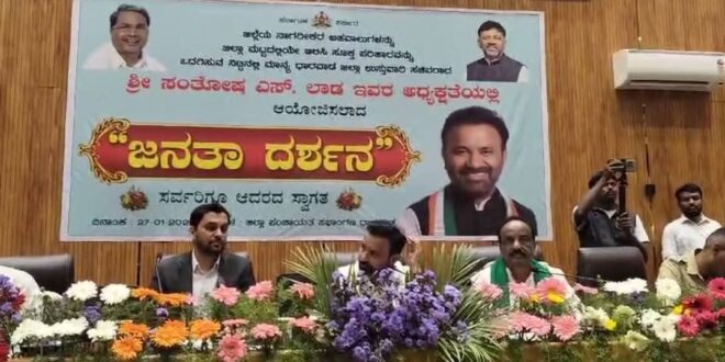 ಸಿಎಂ ಸಿದ್ದರಾಮಯ್ಯವರು ಎಲ್ಲ ಜಿಲ್ಲೆಗಳಲ್ಲಿ ಜಿಲ್ಲಾ ಉಸ್ತುವಾರಿ ಸಚಿವರುಗಳು ಜಿಲ್ಲಾ ಕೇಂದ್ರಗಳಲ್ಲಿ ಜನತಾ ದರ್ಶನ ನಡೆಸಲು ಸೂಚನೆ ಮೇರೆಗೆ, ಧಾರವಾಡ ಜಿಲ್ಲಾ ಉಸ್ತುವಾರಿ ಸಚಿವ ಸಂತೋಷ ಲಾಡ್ ಇಂದು ಧಾರವಾಡದಲ್ಲಿ ಜನತಾ ದರ್ಶನನಡೆಸಿ ಸಾರ್ವಜನಿಕರಿಂದ ಅಹವಾಲು ಸ್ವೀಕರಿಸಿದರು.
