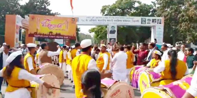 ಕಣ್ಮನ ಸೆಳೆದ ಅಖಿಲ ಭಾರತೀಯ 98ನೇ ಮರಾಠಿ ಸಾಹಿತ್ಯ ಸಮ್ಮೇಳನದ ಗ್ರಂಥ ದಿಂಡಿ
