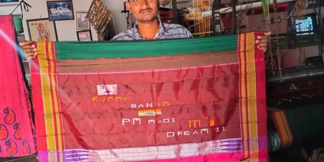ಕನ್ನಡ ನಾಡಿನ ಹೆಮ್ಮೆಯ ಜಗತ್ಪ್ರಸಿದ್ಧ ಇಳಕಲ್ ಸೀರೆಯ ಸೆರಗಿನಲ್ಲಿ, ರಮ್ಮಿ ಮತ್ತು ಡ್ರೀಮ್ ಇಲೆವೆನ್ ಆಪ್ಗಳನ್ನು ಬ್ಯಾನ್ ಇನ್ ಇಂಡಿಯಾ ಪಿಎಂ ಮೋದಿ ಎಂದು ಭಾರತದ ಲಾಂಛನದ ಚಿತ್ರ ಸಹಿತ ನೈಗೇ ಮಾಡಿ ಆನ್ಲೈನ್ ಆ್ಯಪ್ ಬ್ಯಾನ್ ಮಾಡಿ ಎಂದು ಆಗ್ರಹಿಸಿದ್ದಾರೆ.ಮಧ್ಯಮ ವರ್ಗದ ಜನರ ಹಿತದೃಷ್ಟಿ ಹಾಗೂ ಆಪ್ ಹುಚ್ಚಿಗೆ ಬಿದ್ದು ಹಾಳಾಗುತ್ತಿರುವ ಯುವಕರ ತಾಯಂದಿರ ಪರವಾಗಿ ಈ ಸೀರೆಯನ್ನು ನೇಯ್ಗೆ ಮಾಡಿದ್ದೇನೆ. ಈ ಸೀರೆಯನ್ನು ಪ್ರಧಾನಿ ಮೋದಿಯವರ ಕಾರ್ಯಾಲಯಕ್ಕೆ ಕಳುಹಿಸುವುದಾಗಿ ತಿಳಿಸಿದ್ದಾರೆ.