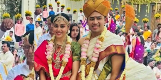 ಬೆಂಗಳೂರು: ಬಿಜೆಪಿ ಲೋಕಸಭಾ ಸದಸ್ಯ ತೇಜಸ್ವಿ ಸೂರ್ಯ ಮತ್ತು ಪ್ರಸಿದ್ಧ ಗಾಯಕಿ, ಭರತನಾಟ್ಯ ಕಲಾವಿದೆ ಶಿವಶ್ರೀ ಸ್ಕಂದ ಪ್ರಸಾದ್ ಅವರ ವಿವಾಹ ಅದ್ಧೂರಿಯಾಗಿ ಕನಕಪುರ ರಸ್ತೆಯ ಖಾಸಗಿ ರೆಸಾರ್ಟ್ನಲ್ಲಿ ಗುರುವಾರ ನೆರವೇರಿತು.