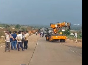 ಕ್ರೇನ್ ಮೂಲಕ ತೆರವು ಮಾಡಿ ಸಂಚಾರಕ್ಕೆ ಅನುವು ಮಾಡಿಕೊಡ್ತಿರುವ ಪೊಲೀಸರು ಹಿರೇಬಾಗೇವಾಡಿ ಪೊಲೀಸ್ ಠಾಣಾ ವ್ಯಾಪ್ತಿಯಲ್ಲಿ ನಡೆದ ಅಪಘಾತವಾಗಿದೆ.