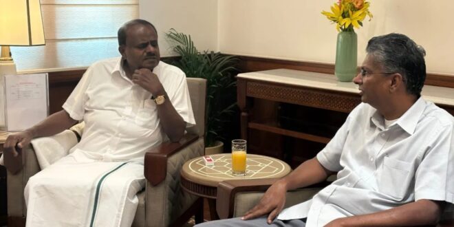 ಬಿಜೆಪಿ ಜೊತೆ ಮೈತ್ರಿ ಮಾಡಿಕೊಂಡಿರುವ ಕುಮಾರಸ್ವಾಮಿ ಈಗ ಕೇಂದ್ರ ಸಚಿವರು. ಮತ್ತೊಂದೆಡೆ, ರಾಜ್ಯ ಕಾಂಗ್ರೆಸ್‌ ಸರ್ಕಾರದ ಪ್ರಭಾವಿ ಸಚಿವ ಸತೀಶ್ ಜಾರಕಿಹೊಳಿ. ಇವರಿಬ್ಬರ ಭೇಟಿಯೇ ಈಗ ಹತ್ತು ಹಲವು ಪ್ರಶ್ನೆಗಳು ಹುಟ್ಟಿಕೊಳ್ಳಲು ಕಾರಣವಾಗಿದೆ. ದೆಹಲಿಯಲ್ಲಿ ಕುಮಾರಸ್ವಾಮಿ ಜತೆ ಡಿನ್ನರ್‌ ಮೀಟಿಂಗ್ ಮಾಡಿದ್ದಾರೆ, ದೇವೇಗೌಡರ ಜತೆಗೂ ಗುಪ್ತ ಸಭೆ ನಡೆಸಿದ್ದಾರೆ. ಈ ಭೇಟಿಯ ಅಜೆಂಡಾ ಏನು? ಈ ಭೇಟಿಯ ಬಳಿಕ ರಾಜಕೀಯದ ಯಾವ ದಾಳ ಉರುಳುತ್ತೆ ಎಂಬುದು ರಹಸ್ಯವಾಗಿಯೇ ಉಳಿದಿದೆ. ಬೆಂಗಳೂರಿಗೆ ಬಂದಮೇಲೆ ಎಲ್ಲವನ್ನೂ  ಹೇಳುತ್ತೇನೆ ಎಂದು ಸತೀಶ್‌ ಹೇಳಿದ್ದು, ಕುತೂಹಲವನ್ನು ಮತ್ತಷ್ಟು ಹೆಚ್ಚಿಸಿದ್ದಾರೆ.