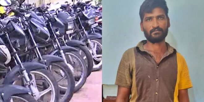 ಹಾಸನ : ಒಂದಲ್ಲ, ಎರಡಲ್ಲ, ಮೂರಲ್ಲ ಬರೋಬ್ಬರಿ 33 ದ್ವಿಚಕ್ರವಾಹನಗಳನ್ನು ಕಳ್ಳತನ ಮಾಡಿ ಮಾರಿದ ಖತರ್ನಾಕ್ ಆರೋಪಿಯನ್ನು ಬಂಧಿಸುವಲ್ಲಿ ಪೊಲೀಸರು ಯಶಸ್ವಿಯಾಗಿದ್ದಾರೆ.