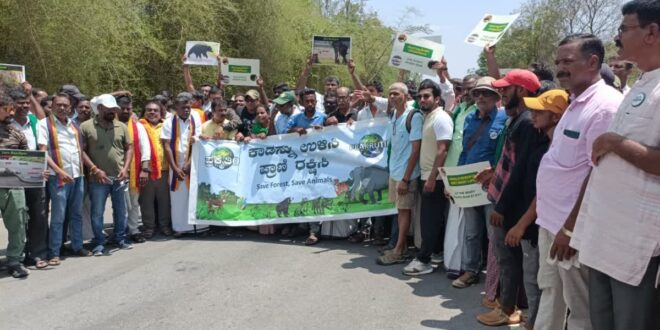 ಚಾಮರಾಜನಗರ: ಗುಂಡ್ಲುಪೇಟೆ ತಾಲೂಕಿನ ಬಂಡೀಪುರದಲ್ಲಿ ರಾತ್ರಿ ಸಂಚಾರ ನಿಷೇಧ ಮುಂದುವರೆಸಬೇಕು, ಯಾವುದೇ ಸಡಿಲಿಕೆ ಇರಬಾರದು ಎಂದು ಆಗ್ರಹಿಸಿ ಪರಿಸರಪ್ರೇಮಿಗಳು ಇಂದು ಬೃಹತ್ ಕಾಲ್ನಡಿಗೆ ಜಾಥಾ ನಡೆಸಿದರು.