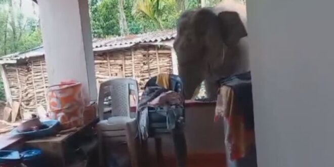 ಮನೆ ಬಾಗಿಲಿಗೆ ಬಂದ ಕಾಡಾನೆ