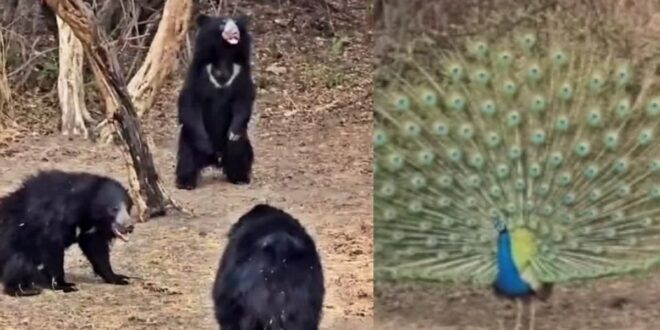 ಧರೋಜಿ ಧಾಮದಲ್ಲಿ ಕರಡಿಗಳ ತುಂಟಾಟ; ವರ್ಷಧಾರೆಯ ಸಿಂಚನಕ್ಕೆ ನರ್ತನ ಮಾಡಿದ ನವಿಲು