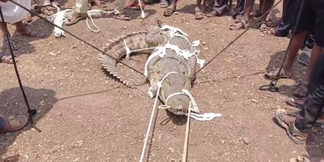 ಹರಸಾಹಸಪಟ್ಟು ಮೊಸಳೆ ಸೆರೆ ಹಿಡಿದ ಯುವಕರು: ನಾಲ್ಕೈದು ಯುವಕರು ದೊಣ್ಣೆಗಳ ಮೂಲಕ ಹಗ್ಗವನ್ನು ಕತ್ತಿಗೆ ಹಾಕಲು ಯತ್ನಿಸಿದಾಗ, ಮೊಸಳೆ ರೊಚ್ಚಿಗೆದ್ದು ಪ್ರತಿರೋಧವೊಡ್ಡಿ ತಪ್ಪಿಸಿಕೊಂಡು ಹೋಗಲು ಪ್ರಯತ್ನಿಸಿದೆ. ಆಗ ಯುವಕರು ಎದೆಗುಂದದೆ ಹರಸಹಾಸಪಟ್ಟು ಮೊಸಳೆಯನ್ನು ಸೆರೆ ಹಿಡಿಯುವಲ್ಲಿ ಯಶಸ್ವಿಯಾಗಿದ್ದಾರೆ.