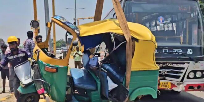 ಕೆಎಸ್​ಆರ್​ಟಿಸಿ ಬಸ್​ -ಆಟೋ ನಡುವೆ ಭೀಕರ ಅಪಘಾತ: ಒಂದೇ ಕುಟುಂಬದ ಮೂವರು ಸಾವು