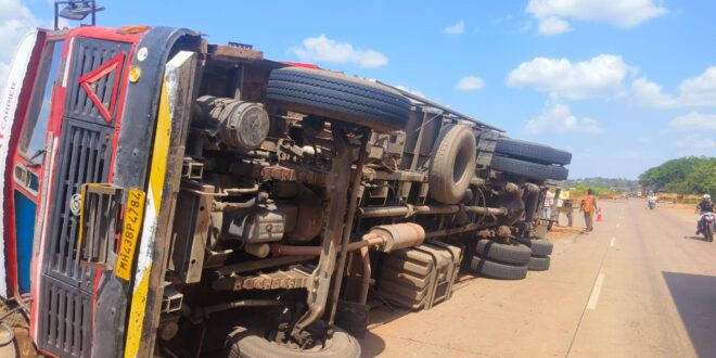 ಚಾಲಕನ ನಿಯಂತ್ರಣ ತಪ್ಪಿದ ಕಂಟೇನರ್ ವಾಹನವೊಂದು ರಾಷ್ಟ್ರೀಯ ಹೆದ್ದಾರಿಯಲ್ಲಿಯೇ ಪಲ್ಟಿಯಾದ ಪರಿಣಾಮ ಚಾಕನಿಗೆ ಗಾಯವಾಗಿರುವ ಘಟನೆ ಇಂದು ಮಧ್ಯಾಹ್ನ ಧಾರವಾಡ ಹೊರವಲಯದ ಕೋಟುರು ಕ್ರಾಸ ಸಮೀಪದ ರಾಷ್ಟ್ರೀಯ ಹೆದ್ದಾರಿಯಲ್ಲಿ ನಡೆದಿದೆ.