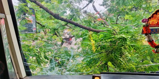 “ಒಂದು ವೇಳೆ ಮರದ ಕೊಂಬೆ ಬಸ್ ಮೇಲೆ ಬಿದ್ದಿದ್ದರೆ ಪ್ರಾಣ ಹಾನಿ ಸಂಭವಿಸುವ ಸಾಧ್ಯತೆ ಇತ್ತು” ಎಂದು ಚಾಲಕ ನಾಗರಾಜ್ ತಿಳಿಸಿದರು.