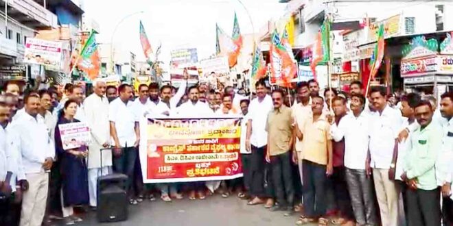 ಆರ್.ಸಿ.ಬಿ ವಿಜಯೋತ್ಸವದ ವೇಳೆ ನಡೆದ ಕಾಲ್ತುಳಿತ ಪ್ರಕರಣವನ್ನು ಖಂಡಿಸಿ ಬಾಗಲಕೋಟೆ ಜಿಲ್ಲೆ ಬನಹಟ್ಟಿ ನಗರದಲ್ಲಿ ಬಿಜೆಪಿಯ ವತಿಯಿಂದ ಪ್ರತಿಭಟನೆ ನಡೆಸಲಾಯಿತು.