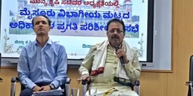 ಮೈಸೂರಿನ ನಾಗನಹಳ್ಳಿ ಕೃಷಿ ತರಬೇತಿ ಕೇಂದ್ರದಲ್ಲಿ ವಿಭಾಗ ಮಟ್ಟದ ಅಧಿಕಾರಿಗಳ ಪ್ರಗತಿ ಪರಿಶೀಲನೆ ಸಭೆಯ ನಂತರ ಸುದ್ದಿಗೋಷ್ಟಿ ನಡೆಸಿ ಮಾತನಾಡಿದರು.