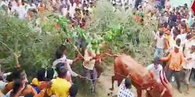 ಎತ್ತುಗಳನ್ನು ಜಿಗಿಸಿ ಕರಿ ಹರಿದು ಕಾರಹುಣ್ಣಿಮೆ ಆಚರಣೆ…