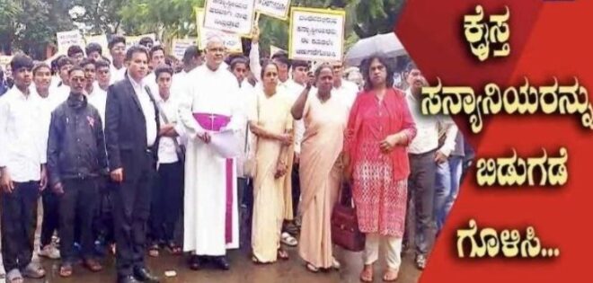 ಛತ್ತೀಸಗಢದಲ್ಲಿ ಬಂಧಿಸಿದ ಕ್ರೈಸ್ತ ಸನ್ಯಾನಿಯರನ್ನು ಕೂಡಲೇ ಬಿಡುಗಡೆಗೊಳಿಸಬೇಕೆಂದು ಆಗ್ರಹಿಸಿ ಇಂದು ಬೆಳಗಾವಿಯಲ್ಲಿ ಕ್ಯಾಥೋಲಿಕ್ ಅಸೋಸಿಯೇಷನ್ ಆಫ್ ಬೆಲಗಾಮನ ವತಿಯಿಂದ ಪ್ರತಿಭಟನೆಯನ್ನು ನಡೆಸಲಾಯಿತು.