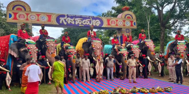 ದಸರಾ ಪ್ರಮುಖ ಆಕರ್ಷಣೆಯಾದ ಜಂಬೂ ಸವಾರಿಯಲ್ಲಿ ಪಾಲ್ಗೊಳ್ಳಲು ಒಟ್ಟು 14 ಆನೆಗಳನ್ನು ಆಯ್ಕೆ ಮಾಡಲಾಗಿದೆ. ಅದರಲ್ಲಿ, 9 ಆನೆಗಳ ಮೊದಲ ತಂಡ ಅಭಿಮನ್ಯು ನೇತೃತ್ವದಲ್ಲಿ ಮೈಸೂರು ನಗರಕ್ಕೆ ಆಗಮಿಸಲಿದೆ. ಗಜಪಡೆಯನ್ನು ಸಾಂಪ್ರದಾಯಿಕವಾಗಿ ಸ್ವಾಗತಿಸುವ ಕಾರ್ಯಕ್ರಮ ಇದಾಗಿದೆ.