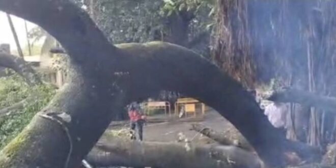 ಬೆಳಗಾವಿ :ನಗರದಲ್ಲಿ ಧಾರಾಕಾರ ಮಳೆ ಹಾಗೂ ಗಾಳಿಗೆ ಬೃಹತ್ ಆಕಾರದ ಮರ ಮತ್ತು ಕೊಂಬೆಗಳು ಉರುಳಿ ಬಿದ್ದ ಘಟನೆ ಬುಧವಾರ ಇಲ್ಲಿ‌ನ ಕ್ಲಬ್ ರಸ್ತೆಯ ಆದಾಯ ತೆರಿಗೆ ಕಚೇರಿ ಬಳಿ ನಡೆದಿದೆ.