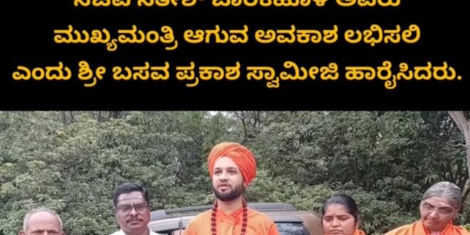 ಸಚಿವ ಸತೀಶ್ ಜಾರಕಿಹೊಳಿ ಅವರು ಮುಖ್ಯಮಂತ್ರಿ ಆಗುವ ಅವಕಾಶ ಲಭಿಸಲಿ ಎಂದು ಶ್ರೀ ಬಸವ ಪ್ರಕಾಶ ಸ್ವಾಮೀಜಿ ಹಾರೈಸಿದರು.