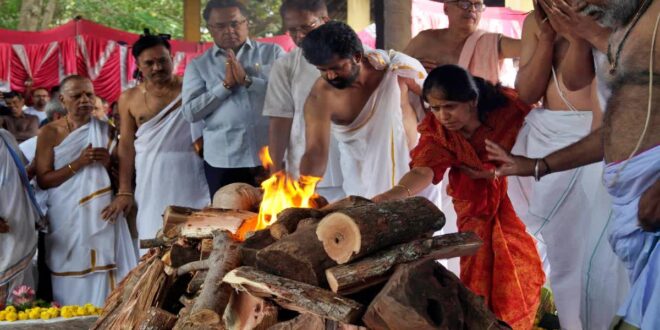 ಮೈಸೂರು: ಹಿರಿಯ ಸಾಹಿತಿ ಹಾಗೂ ಖ್ಯಾತ ಕಾದಂಬರಿಕಾರ ಎಸ್. ಎಲ್. ಭೈರಪ್ಪ ಅವರ ಅಂತ್ಯಕ್ರಿಯೆಯನ್ನು ಸಕಲ ಸರ್ಕಾರಿ ಗೌರವದೊಂದಿಗೆ ಚಾಮುಂಡಿ ಬೆಟ್ಟದ ರುದ್ರ ಭೂಮಿಯಲ್ಲಿ ಬ್ರಾಹ್ಮಣ ಸಂಪ್ರದಾಯದ ಪ್ರಕಾರ ವಿಧಿ ವಿಧಾನಗಳಂತೆ ಅವರ ಹಿರಿಯ ಮಗ ರವಿಶಂಕರ್ ನೆರವೇರಿಸಿದರು. ಈ ಸಂದರ್ಭದಲ್ಲಿ ಕಿರಿಯ ಮಗ ಉದಯಶಂಕರ್ ಇದ್ದರು.