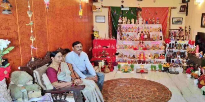 ಅಶ್ವಯುಜ ಮಾಸದ ಪಾಡ್ಯದಿಂದ ದಶಮಿವರೆಗೆ 10 ದಿನ ಗೊಂಬೆ ಕೂರಿಸುವುದು ದಸರಾ ಸಂಪ್ರದಾಯ. ಅಂತೆಯೇ ಸುಮಂಗಲ – ಮುರುಗೇಂದ್ರಪ್ಪ ದಂಪತಿ ಕಳೆದ 13 ವರ್ಷಗಳಿಂದ ತಮ್ಮ ಮನೆಯಲ್ಲಿ ಗೊಂಬೆಗಳನ್ನು ಕೂರಿಸುತ್ತಾ ಬಂದಿದ್ದಾರೆ. ಹೀಗೆ ದಸರಾ ಹಬ್ಬಕ್ಕೆ ಮನೆಯಲ್ಲಿ ಗೊಂಬೆ ಕೂರಿಸುವುದು ಸುಮಂಗಲ ಅವರು ತಾಯಿ ಮನೆಯ ಪದ್ಧತಿಯಂತೆ. ಅ ಪದ್ಧತಿಯನ್ನೇ ಸುಮಂಗಲ ಅವರು ಮುಂದುವರೆಸಿಕೊಂಡು ಬಂದಿದ್ದಾರೆ. ಮಣ್ಣು, ಪೇಪರ್, ಮರ, ಪಿಂಗಾಣಿ, ಹಿತ್ತಾಳೆ, ಕಂಚು, ಹತ್ತಿ, ಬಟ್ಟೆ, ವೈರ್ನಿಂದ ತಯಾರಿಸಿದ ಗೊಂಬೆಗಳನ್ನು ವಿಶೇಷವಾಗಿ ಅಲಂಕರಿಸಿ ಕೂರಿಸಿಕೊಂಡು ಬರುತ್ತಿರುವುದು ಮತ್ತೊಂದು ಗಮನಾರ್ಹ ಸಂಗತಿ.