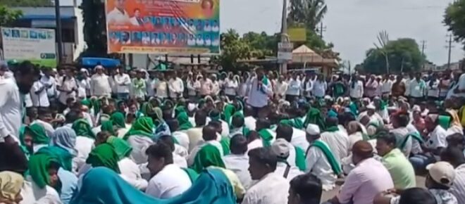 ಪ್ರತಿಭಟನೆಯಲ್ಲಿ ಸಾವಿರಕ್ಕೂ ಅಧಿಕ ರೈತರು ಭಾಗಿ.