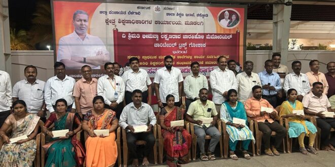 ಇಲ್ಲಿನ ಎನ್ಎಸ್ಎಫ್ ಕಚೇರಿಯಲ್ಲಿ ಶ್ರೀಮತಿ ಭೀಮವ್ವ ಲಕ್ಷ್ಮಣರಾವ್ ಜಾರಕಿಹೊಳಿ ಮೆಮೋರಿಯಲ್ ಟ್ರಸ್ಟ್ ಆಯೋಜಿಸಿದ್ದ ಮೂಡಲಗಿ ವಲಯದ ಸರ್ಕಾರಿ ಪ್ರಾಥಮಿಕ, ಪ್ರೌಢ ಶಾಲೆಗಳ ಅತಿಥಿ ಶಿಕ್ಷಕರಿಗೆ ಗೌರವ ಸಂಭಾವನೆ ವಿತರಿಸಿ ಅವರು ಮಾತನಾಡಿದರು.