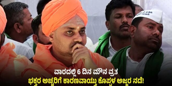 ಕೊಪ್ಪಳ, ಅಕ್ಟೋಬರ್ 14: ಗವಿಮಠದ ಪೀಠಾಧಿಪತಿ ಅಭಿನವ ಗವಿಸಿದ್ದೇಶ್ವರ ಮಹಾಸ್ವಾಮಿಗಳು (Abhinava Gavisiddeshwara Swamiji) ನಡೆದಾಡುವ ದೇವರು ಎಂದೇ ಪ್ರಸಿದ್ದ. ಅವರ ದರ್ಶನಕ್ಕಾಗಿ ಪ್ರತಿನಿತ್ಯ ಲಕ್ಷಾಂತರ ಭಕ್ತರು ಆಗಮಿಸುತ್ತಾರೆ. ಹೀಗಿರುವಾಗ ಸ್ವಾಮೀಜಿಯ ಅದೊಂದು ನಡೆ ಮಾತ್ರ ಎಲ್ಲರಲ್ಲೂ ಅಚ್ಚರಿಗೆ ಕಾರಣವಾಗಿದೆ. ವಾರದಲ್ಲಿ ಒಂದು ದಿನ ಮಾತ್ರ ಮೌನ ಅನುಷ್ಠಾನ ಆಚರಿಸುತ್ತಿದ್ದ ಅವರು, ಇದೀಗ ವಾರದಲ್ಲಿ ಆರು ದಿನ ಮೌನ ಅನುಷ್ಠಾನದ ಮೊರೆಹೋಗುತ್ತಿದ್ದಾರೆ. ಆ ಮೂಲಕ ಕಾರ್ಖಾನೆಯೊಂದರ ವಿಚಾರವಾಗಿ ಪರೋಕ್ಷವಾಗಿ ವ್ಯವಸ್ಥೆಯ ವಿರುದ್ಧ ಆಕ್ರೋಶ ವ್ಯಕ್ತಪಡಿಸುತ್ತಿದ್ದಾರೆ. ಸದ್ಯ ಈ ವಿಚಾರ ಅವರ ಭಕ್ತರ ಮಧ್ಯೆ ಭಾರೀ ಚರ್ಚೆಗೆ ಗ್ರಾಸವಾಗಿದೆ.