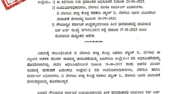 ಹೌದು ಜಾರಕಿಹೋಳಿ ಮತ್ತು ಕತ್ತಿ ಕುಟುಂಬದ ನಡುವೆ ಭಾರಿ ಜಿದ್ದಾ ಜಿದ್ದಿನಿಂದ ಜರುಗಲಿರುವ ಬೆಳಗಾವಿ ಜಿಲ್ಲಾ ಮದ್ಯವರ್ತಿ ಸಹಕಾರಿ ಬ್ಯಾಂಕಿನ ಚುನಾವಣೆ ಈಗ ಮತ್ತೊಂದು ಹಂತ ತಲುಪಿದೆ, ಅಕ್ಟೋಬರ್ 19 ರಂದು ಏಳು ಸ್ಥಾನಗಳಿಗೆ ಮತದಾನ ನಡೆಯಬೆಕಿತ್ತು ಆದರೆ ಕರ್ನಾಟಕ ಉಚ್ಚ ನ್ಯಾಯಾಲಯ ಆದೇಶದ ಅನ್ವಯ ಹುಕ್ಕೇರಿ ಕ್ಷೇತ್ರದ ಗ್ರಾಮಿಣ ಕೃಷಿ ಪತ್ತಿನ ಸಹಕಾರಿ ಬ್ಯಾಂಕಿನ ಕ್ಷೇತ್ರದ ಚುನಾವಣೆಗೆ ರೀಟ್ ಅರ್ಜಿ ಧಾಖಲಾದ ಕಾರಣ