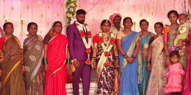 ಬೆಳಗಾವಿ ಜಿಲ್ಲೆ ಗೋಕಾಕ್​ ತಾಲೂಕಿನ ಶಿಲ್ಲತಹಳ್ಳಿ ಗ್ರಾಮದ ಹೆಳವ ಸಂಗಮೇಶ್​​ ಮತ್ತು ಗೋಕಾಕ್​ ತಾಲೂಕು ಕಂಡ್ರಕಟ್ಟಿ ಗ್ರಾಮದ ನೇತ್ರಾವತಿ ಅವರು ಗ್ರಾಮಸ್ಥರ ಮತ್ತು ರೈತರ ಸಮ್ಮುಖದಲ್ಲಿ ನೂತನ ದಾಂಪತ್ಯಕ್ಕೆ ಕಾಲಿಟ್ಟರು. ಅಗಡಿ ಗ್ರಾಮದ ಹೊರವಲಯದಲ್ಲಿ ಹೆಳವರ ತಾತ್ಕಾಲಿಕ ಶೆಡ್ ಬಳಿ ಹಾಕಿದ ಅದ್ಧೂರಿ ಪೆಂಡಾಲ್‌ನಲ್ಲಿ ಸಂಗಮೇಶ್​​ ಮತ್ತು ನೇತ್ರಾವತಿ ಮದುವೆಯಾದರು. ಈ ಮದುವೆಗೆ ಅಗಡಿ ಗ್ರಾಮಸ್ಥರು ಮತ್ತು ರೈತರು ಸಾಕ್ಷಿಯಾದರು.