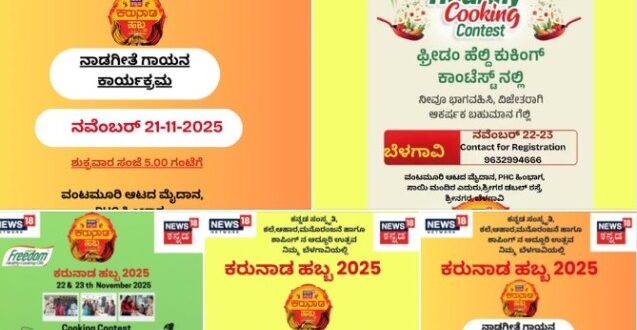 ಇದೇ ಮೊದಲ ಬಾರಿಗೆ ಬೆಳಗಾವಿ ನಗರದಲ್ಲಿ ನ್ಯೂಸ್ 18 ಕನ್ನಡ ಸುದ್ದಿವಾಹಿನಿ ವತಿಯಿಂದ ಕರುನಾಡ ಹಬ್ಬ ಕಾರ್ಯಕ್ರಮ ಆಯೋಜನೆ ಮಾಡಲಾಗಿದೆ.