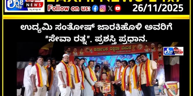 ಉದ್ಯಮಿ ಸಂತೋಷ್ ಜಾರಕಿಹೊಳಿ ಅವರಿಗೆ “ಸೇವಾ ರತ್ನ”. ಪ್ರಶಸ್ತಿ ಪ್ರಧಾನ.