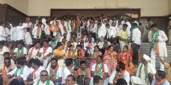 ರಾಜ್ಯ ಸರ್ಕಾರದ ಕಾರ್ಯವೈಖರಿ ಮತ್ತು ರೈತರ ಸಮಸ್ಯೆಗಳ ನಿರ್ಲಕ್ಷ್ಯವನ್ನು ಖಂಡಿಸಿ ಜಿಲ್ಲಾ ಬಿಜೆಪಿ ವತಿಯಿಂದ ನವನಗರದಲ್ಲಿರುವ ಡಿಸಿ ಕಚೇರಿ ಆವರಣದಲ್ಲಿ ಇಂದು ಬೃಹತ್ ಪ್ರತಿಭಟನೆ ನಡೆಸಲಾಯಿತು.