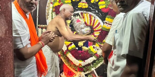ಶಾಸಕ ಬಾಲಚಂದ್ರ ಜಾರಕಿಹೊಳಿಯವರನ್ನು ದೇವಸ್ಥಾನದ ಅರ್ಚಕರು ಸನ್ಮಾನಿಸಿ ಗೌರವಿಸಿದರು.