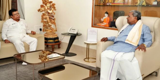 ಇದರ ಬೆನ್ನಲ್ಲೇ ಇದೀಗ ಕೆ.ಎನ್.ರಾಜಣ್ಣ ಅವರು ಮಂಗಳವಾರ ಸಿಎಂ ಸಿದ್ದರಾಮಯ್ಯರನ್ನು ಸರ್ಕಾರಿ ನಿವಾಸ ಕಾವೇರಿಯಲ್ಲಿ ಭೇಟಿ ಮಾಡಿ ತುಸು ಹೊತ್ತು ಸಮಾಲೋಚನೆ ನಡೆಸಿದ್ದಾರೆ. ಉಭಯ ನಾಯಕರ ಈ ಭೇಟಿ ಪವರ್ ಫೈಟ್ ಅಧ್ಯಾಯಕ್ಕೆ ಇನ್ನಷ್ಟು ತಿರುವುಗಳನ್ನು ನೀಡಿದೆ. ಸಿಎಂ ಸಿದ್ದರಾಮಯ್ಯ ಭೇಟಿ ವೇಳೆ ಕೆ.ಎನ್.ರಾಜಣ್ಣ ಇತ್ತೀಚೆಗೆ ಡಿಸಿಎಂ ಡಿಕೆಶಿ ಭೇಟಿ ಬಗ್ಗೆ ವಿವರಿಸಿದ್ದಾರೆ ಎಂದು ಹೇಳಲಾಗುತ್ತಿದೆ. ಇಬ್ಬರ ನಡುವೆ ನಡೆದ ಸಮಾಲೋಚನೆ, ರಾಜಕೀಯ ವಿದ್ಯಮಾನಗಳ ಬಗ್ಗೆ ಮಾಹಿತಿ ನೀಡಿದ್ದಾರೆ ಎನ್ನಲಾಗಿದೆ.